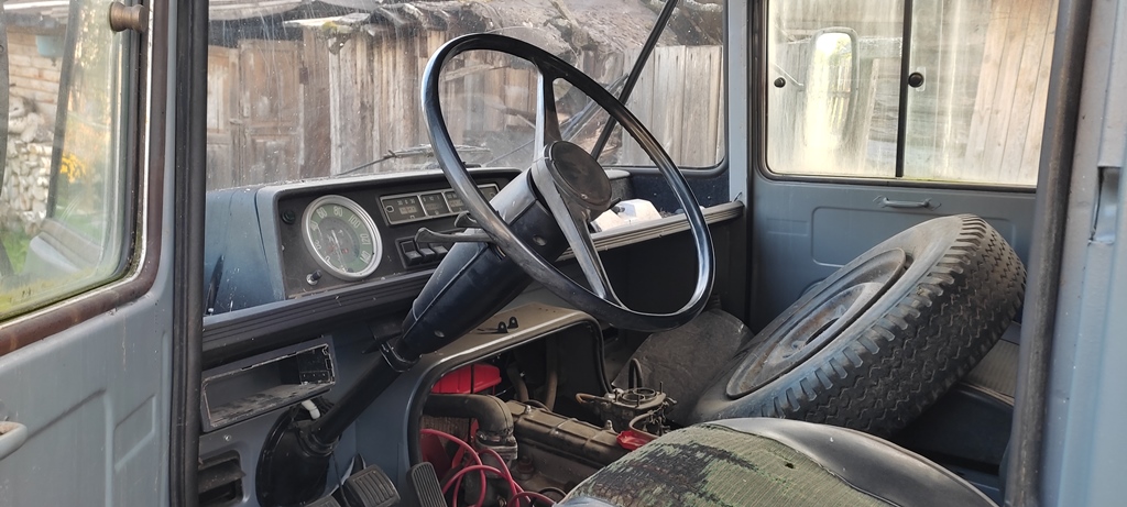 Прежний хозяин православный священник, очень интересный человек. Увлекается немецкой культурой и занимается реконструкцией подобной техники. Из этого буса хотел сделать кемпер, но за три года так времени и не нашел. Так что на машине не просто "ездили по воскресенья в церковь", а она стояла на заднем дворе церкви.