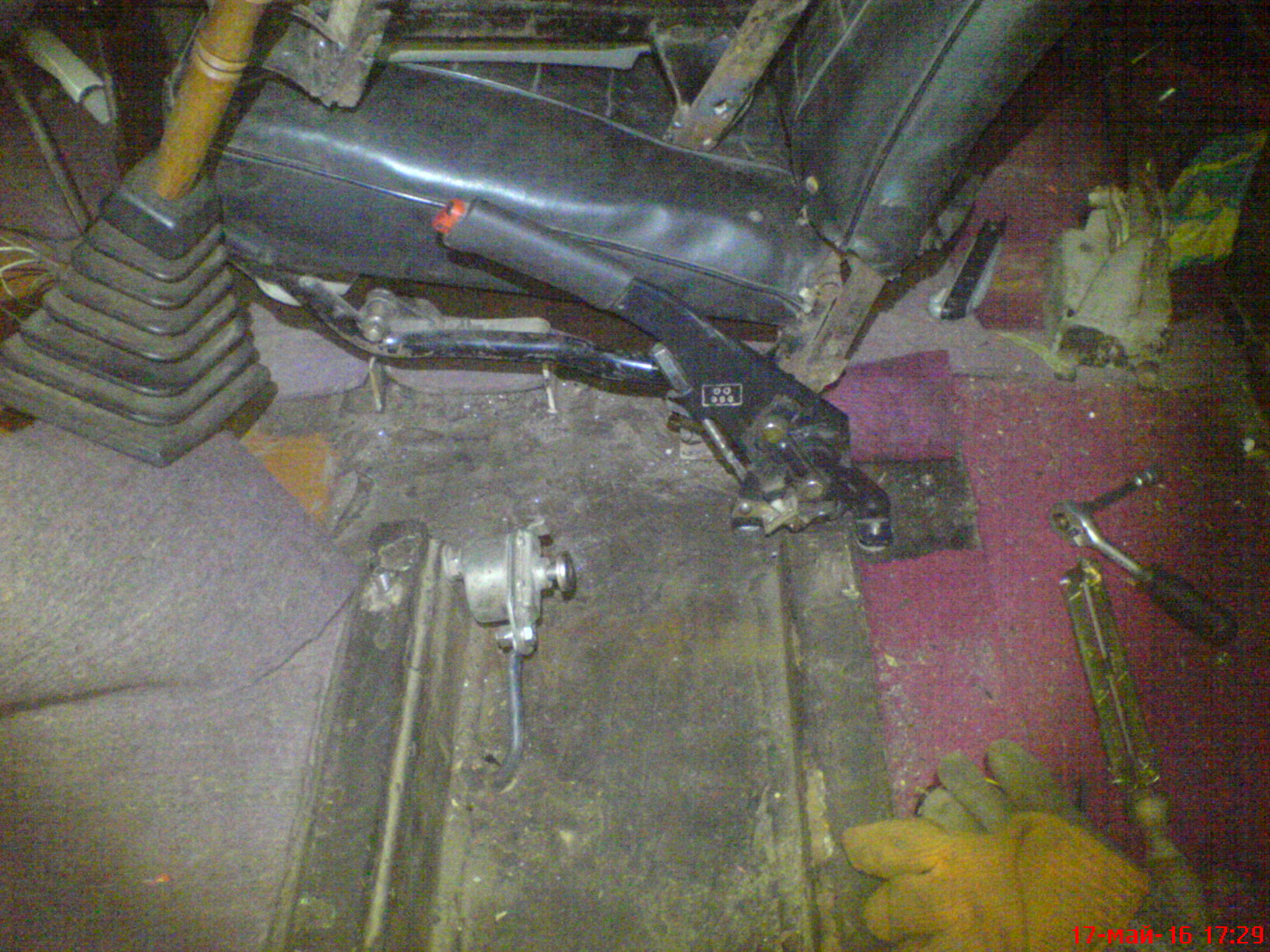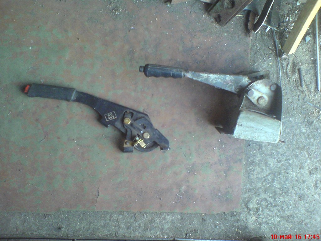 Так же надо сделать ручник .Точнее трансмиссионный тормоз.Раньше рычаг стоял слева от водителя. Как бы удобно .Потому что между сиденьями практически нет места.Но есть один неприятный момент.Сидишь в машине ,затянул ручник-а надо выходить. А тут елда такая торчит :cry: .Я его раньше затягивал уже после того как слезу с сиденья.