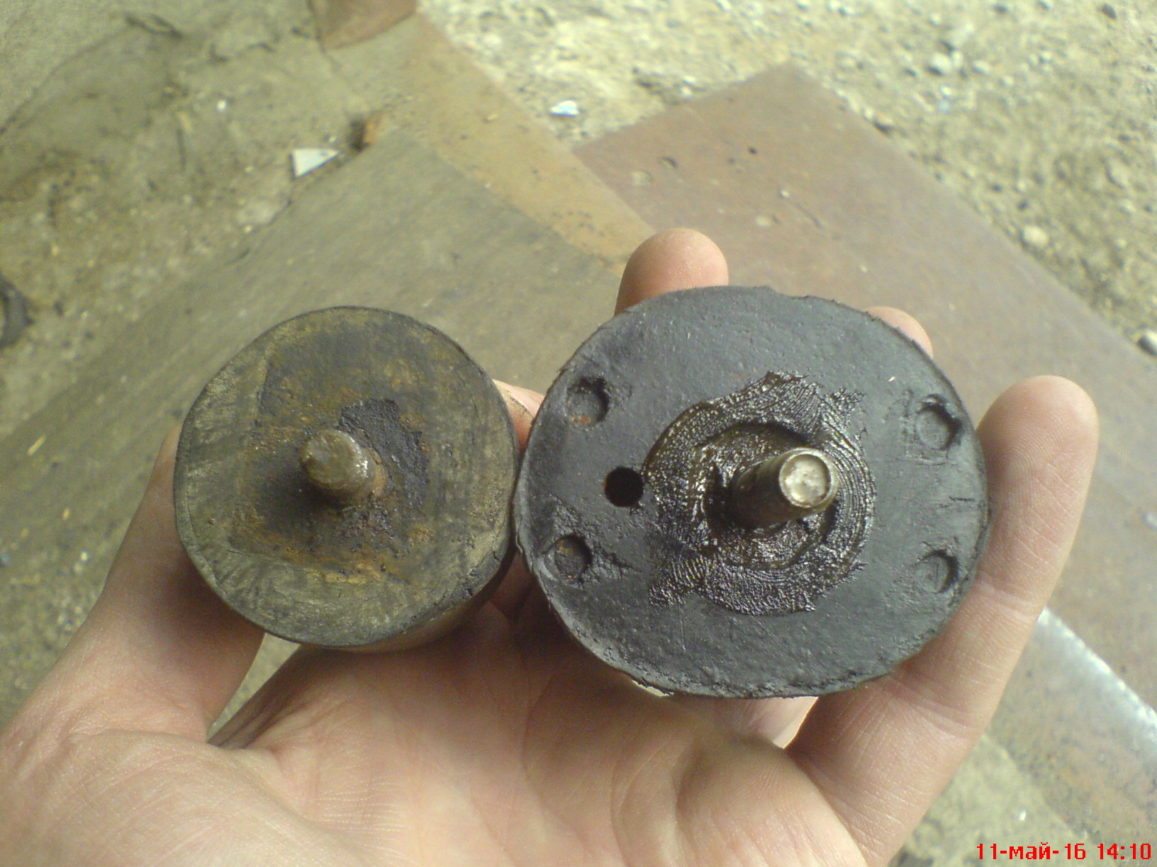 Сегодня удалось немного внимания уделить машине.Так как буфер сжатия у меня был один,пришлось ехать в магазин РТИ.Именно родных не было.Купил ГАЗелевские(по "убого-колхозному" методу).Они выше на пять миллиметров и шире.Резьба для крепления такая же М8. Зато цена приемлемая .22 грн штука - 0,88$ .Задние кстати ,тоже стоят такие же.