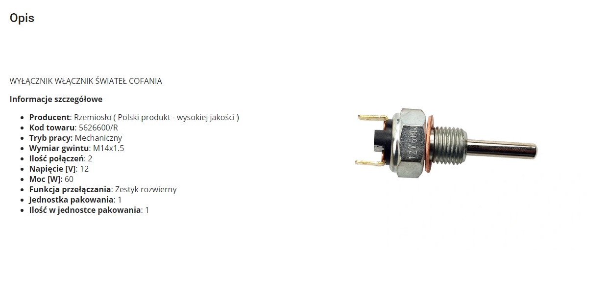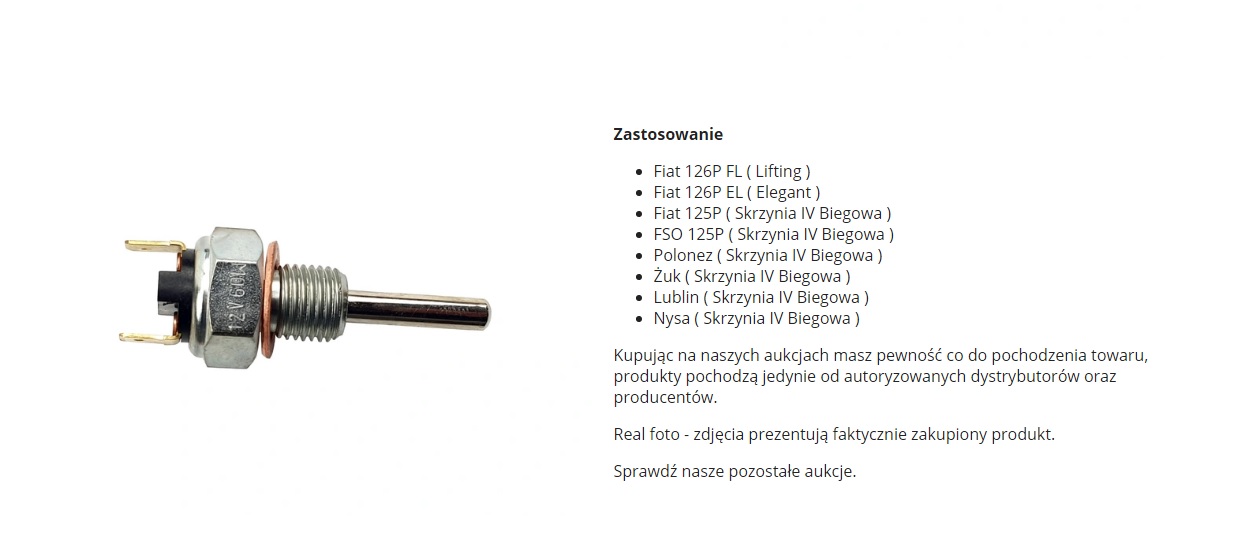 Старого-не могу, т.к. на нем вообще ничего не написано, а нового (того, что мне не подошел)-могу выложить скрины со страницы Аллегро, где я его покупал (там по-польски, но все и так понятно), и на всякий случай даю ссылку: https://allegro.pl/oferta/wylacznik-swiatel-cofania-nysa-skrzynia-iv-8775643197. Как я и думал, этот датчик для 4-х ступенчатых коробок, и на трехступках работает наоборот. Короче, в следующий раз буду читать описание внимательнее))). Ну а тот датчик, что в итоге оказался подходящим-обычный датчик зх 2108-чего-то-там, словом, продается в любом магазине з\ч для ВАЗов.