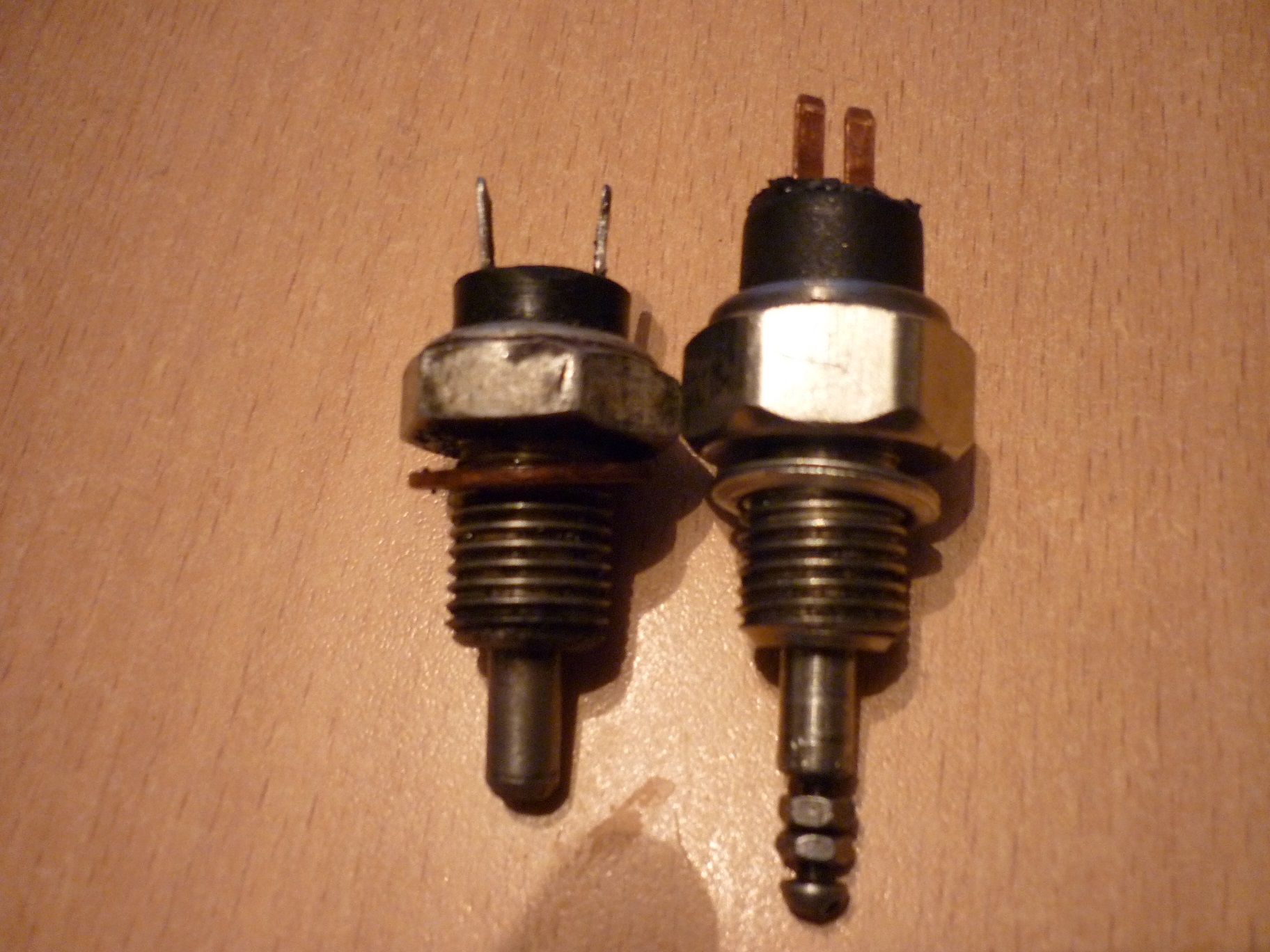 Итак, по наводке уважаемого Chasopis я заглянул в блог Газиковладельца с коробкой от Жука, и вуаля! Все ответы найдены! Купил датчик от восьмерки, подключил к проводам-да, действительно, работает как надо. Поставил в коробку-действительно, коротковат шток. Я не стал, как автор записи на Драйве, удлинять шток путем напайки, а просто сделал, как у меня было на старом датчике-просверлил в штоке углубление, нарезал резьбу метчиком и вкрутил туда винтик со старого датчика, удлинив, таким образом шток на 1 см. Поставил в коробку-все работает отлично! Спасибо Chasopis за наводку.