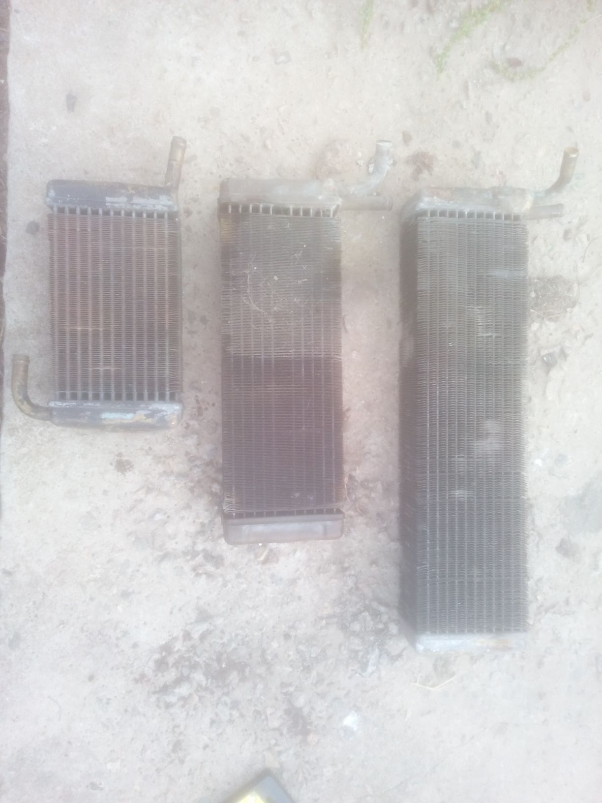 - Для сравнения радиаторы печку слева - от Жука, посредине Ныса нового типа, справа Ныса старого типа.