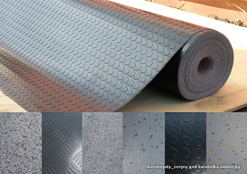 Называется "покрытие промышленное". Но оно не как автолин, а чуток жёсче, почти как линолеум... Хотя цвета на выбор разные - и красные и желтые, синие, черные, серые... Рулон лежал именно серого. В твердой валюте стоимость ~5,5 USD/м2 (~4 Euro/м2).