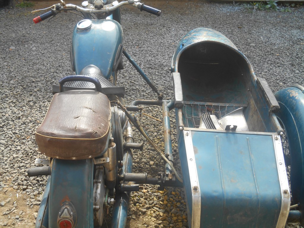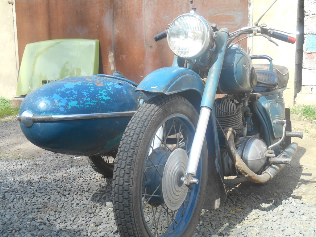Иж-56 1960 г.в. Ветерану 55 лет !!! Мотик практически в комплекте с небольшим колхозом,больше всех досталось корыту коляски,плющили её как тюбик из под зубной пасты...