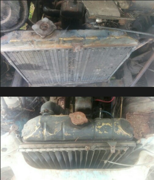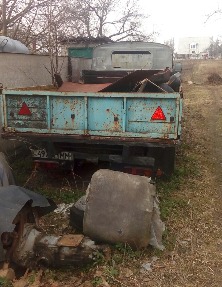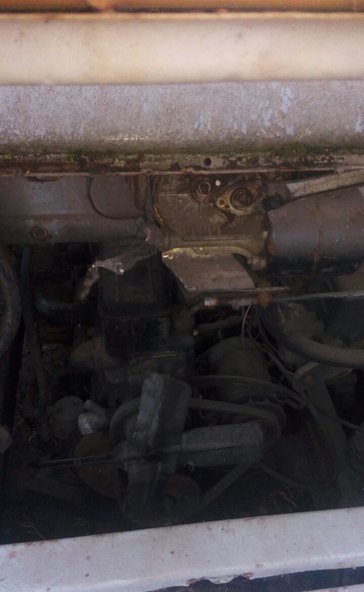 Потратив несколько часов на мытьё и осиную пасеку, приступили к оживлению. Масло в картере не первой свежести, но для пробного старта пойдёт. Корбой провернуть коленвал не получилось из-за мега-бампера, но удалось провернуть монтировкой. Крутанули немного стартером, подлили бензина в карбюратор и двигатель схватил и заработал!!! Установили радиатор, начали заливать воду и вода потекла... Оказалось выдавлена нижняя заглушка блока. На этом пока остановились. На днях поставим новую заглушку и продолжим процесс. Фотоотчёт позже.