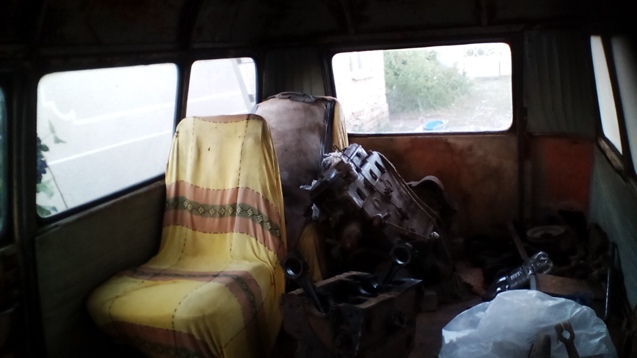 Кстати , на последнем фото справа от Нысы стоит акуратно укутаный второй двигатель S-21, который когда-то был снят с Жука. Сказали что он был рабочий, но начал подъедать маслецо. Этот двигатель достался в комплекте с бусом. З а дополнительно оговоренную плату в просторный салон Икара вошли еще один разобранный движок ( частично разукоплектован), детали передней подвески, тормозные цилиндры, щиты, колодки, два колеса в сборе с какой-то там резиной, гидр. домкрат.