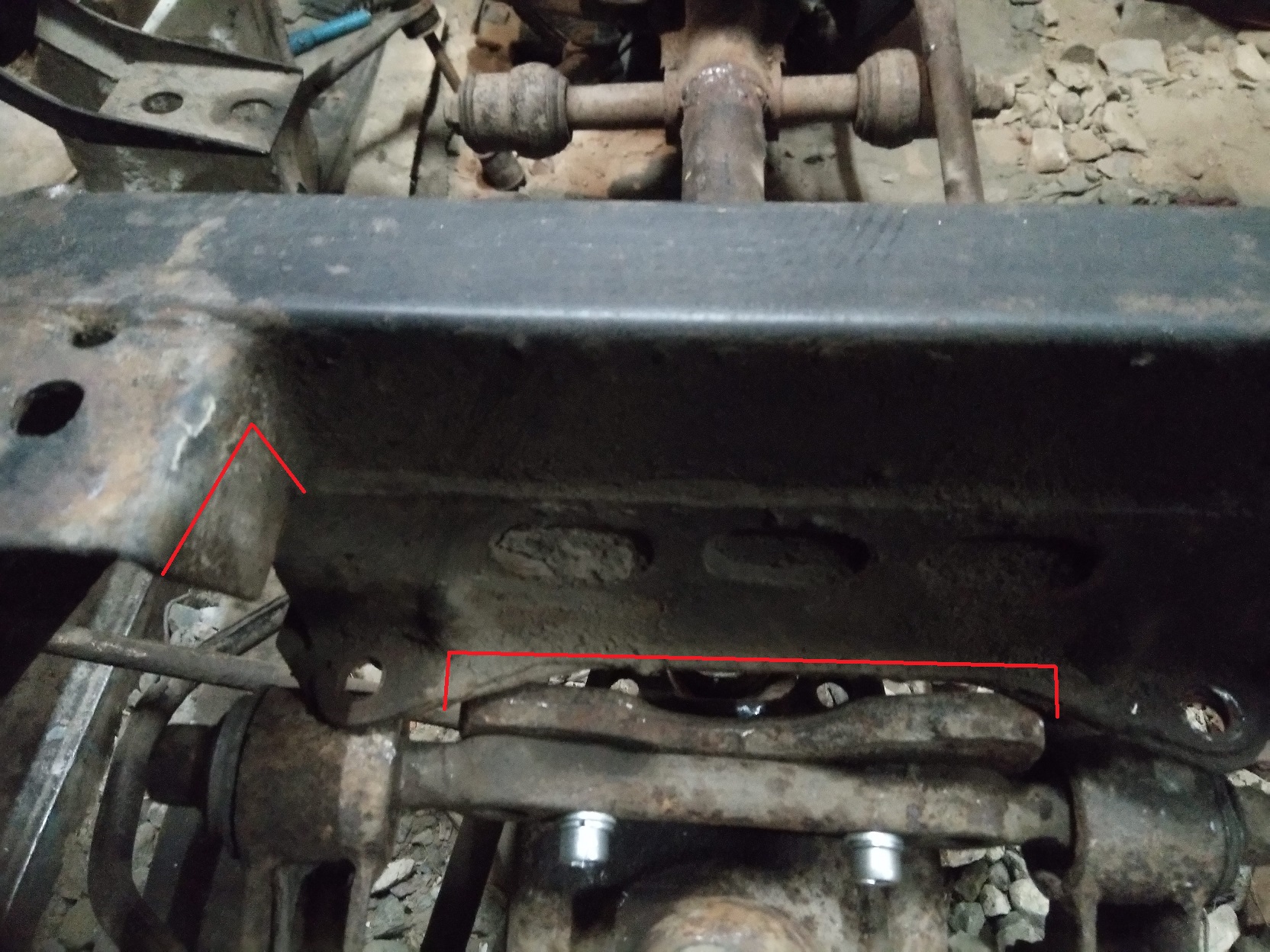 Красными линиями показано,что пришлось отрезать, чтобы балка села на раму